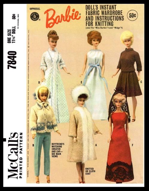 7840 Mccall S Barbie Pattern Fashion Doll Fabric Sewing Knitting Wardrobe 60 S 5 49 Picclick